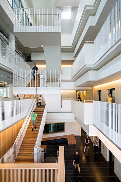 Deeply carved reveals, open atriums, generous overhangs and a series of operable skins salute the simplicity and pragmatism of a design ethos that viscerally responds to the environment. “Our buildings are about the climate,” says Kirk.