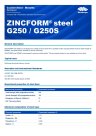 | ZINCFORM® steel G250 and G250S Datasheet Hot-dipped zinc-coated structural steel with a spangled surface and guaranteed minimum yield strength of 250MPa, with good ductility. Suitable for severe rollforming. ZINCFORM® G250S steel is skin passed to improve surface quality. This skin passed product is only available up to 2mm thick. | |